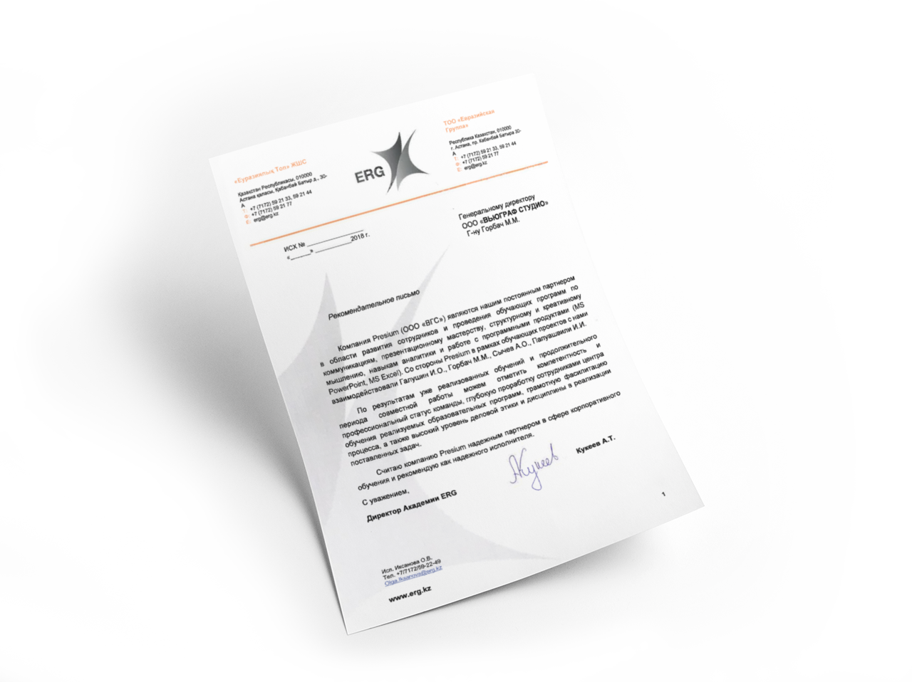 Компания Presium (ООО «ВГС») являются нашим постоянным партнером в области развития сотрудников и проведения обучающих программ по коммуникациям, презентационному мастерству, структурному и креативному мышлению, навыкам аналитики и работе с программными продуктами (MS PowerPoint, MS Excel). Со стороны Presium в рамках обучающих проектов с нами взаимодействовали Галушин И. О., Горбач М. М., Сычев А. О., Папуашвили И. И.