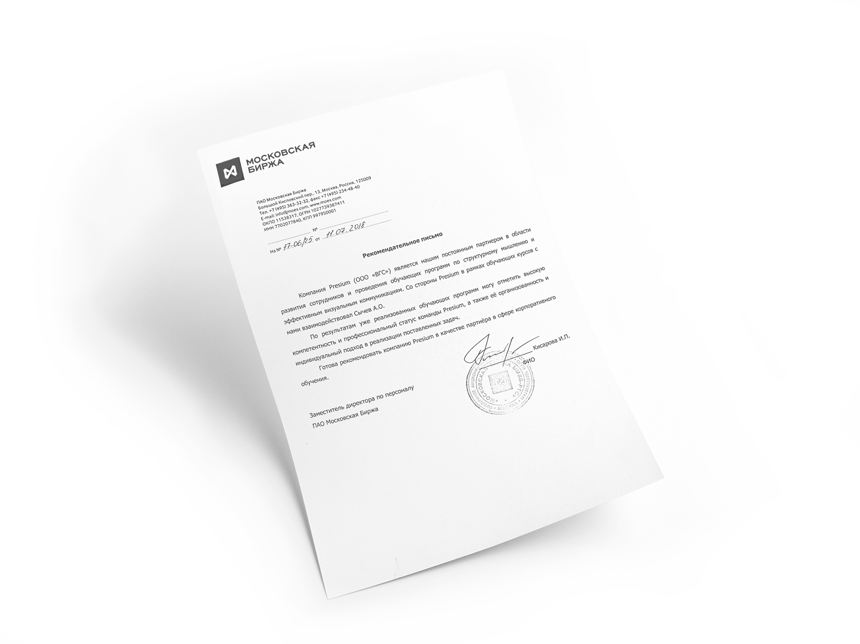 Компания Presium (ООО «ВГС») является нашим постоянным партнером в области развития сотрудников и проведения обучающих программ по структурному мышлению и эффективным визуальным коммуникациям. Со стороны Presium в рамках обучающих курсов с нами взаимодействовал Сычев А. О.